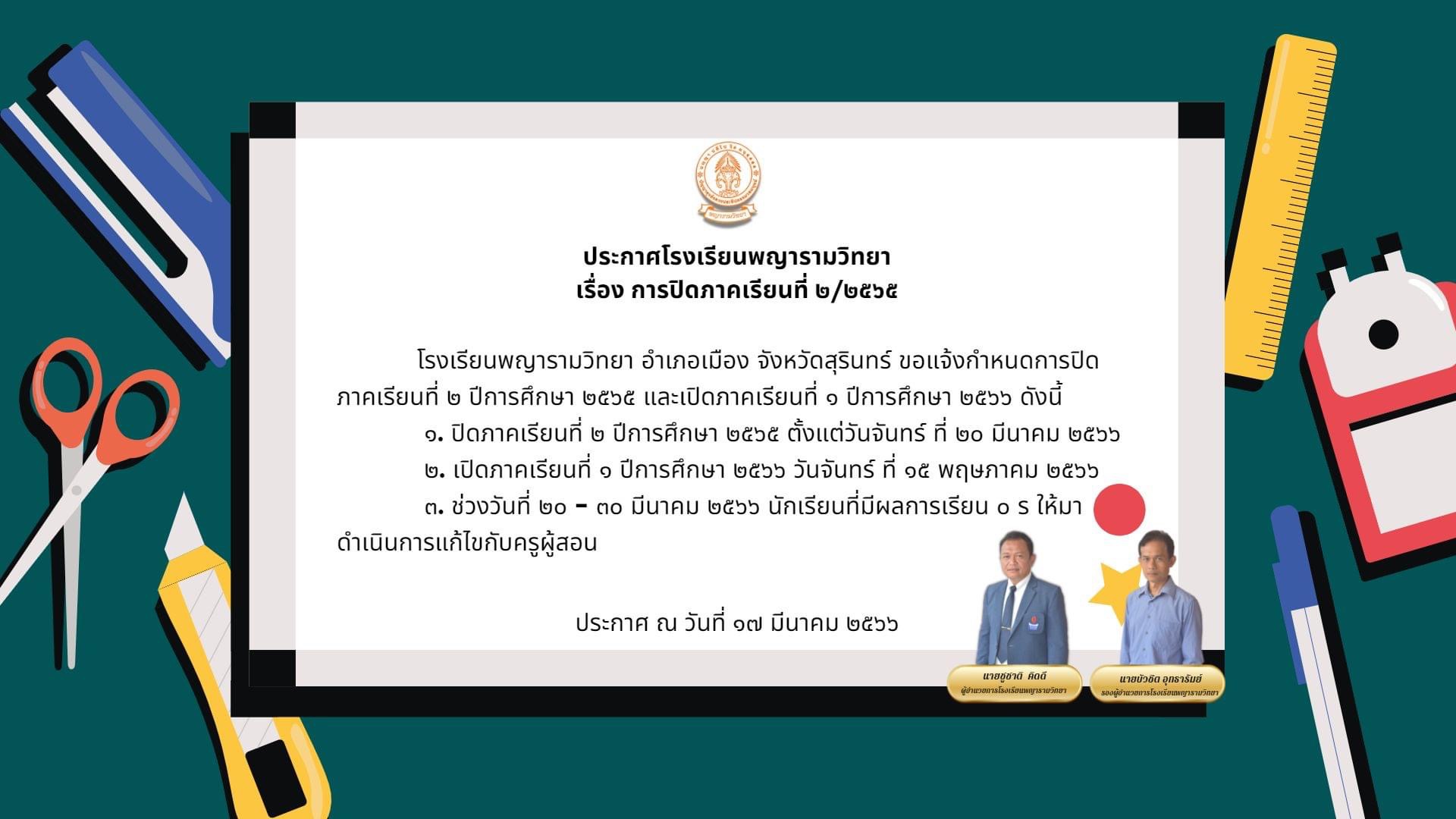 ประกาศปิดภาคเรียน