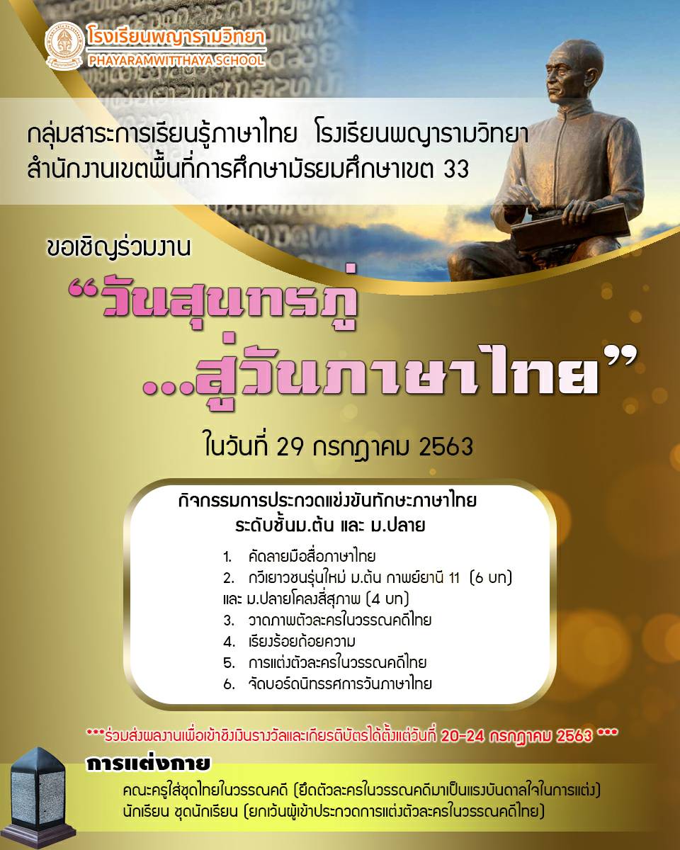 ขอเชิญร่วมงานวันสุนทรภู่ สู่วันภาษาไทย